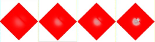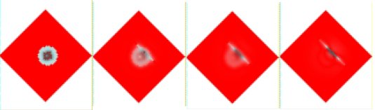The first results from the Unitary Twist Field Theory are in, and they are showing a three ring circus! Here are the sim output pictures. The exciting news is that the field does produce a stable particle configuration that is very independent of the initial boundary conditions and strength of the background state and the neighborhood connection force–the same particle emerges from a wide variety of startup configurations. Convergence appears visible after about 20 iterations, and remains stable and unchanging after 200000 steps. So–no question that this non-linear field produces stable solitons, thus validating my hypothesis that there ought to be some field that can produce the particle zoo. Will this particular field survive investigation into relativistic behavior, quantum mechanics and produce the diversity of particles we see in the real world? I created this theory based on the E=hv constraint that implies a magnitude-free field and a background state, a rotation vector field that includes the +/-I direction, and many other things discussed in previous posts, so I think this field is a really good guess. However, it wouldn’t surprise me at all that I don’t have this right and that changes to the hypothetical field will be necessary. As usual, as in any new line of research work, it’s quite possible I’m doing something stupid or this is the result of some artifact of how I am doing the simulation–it doesn’t look like it to me, but that’s always something to watch out for. However, here I am seeing good evidence I have validated this line of inquiry–looking for a non-linear precursor field that produces the particles and force-exchange particles of the Standard Model.